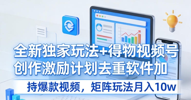 全新独家玩法+得物视频号创作激励计划去重软件加持爆款视频,矩阵玩法月入10w+【揭秘】 项目介绍: 为什么会推荐大家去做这个得物平台呢,首先这个平台可以 ...