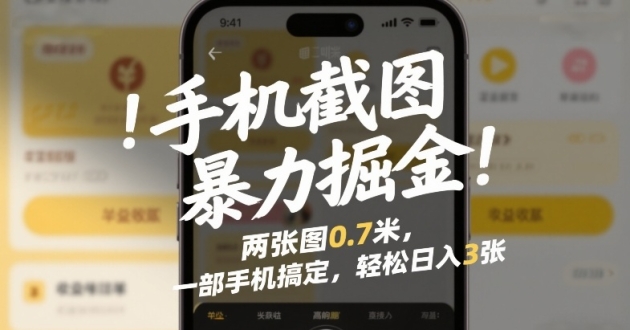 手机截图暴力掘金!两张图0.7米,一部手机搞定,轻松日入3张【揭秘】 项目介绍: 如今社会,流量就是王道,酒店行业也不例外。为了提升曝光度和搜索权重, ...
