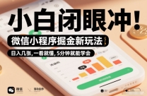 微信小程序掘金新玩法,日入几张,一看就懂,5分钟就能学会,小白闭眼冲【揭秘】 项目揭秘,项目介绍: 一直以来,很多朋友都在找「简单易做、没时间限制」 ...