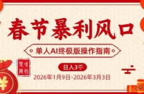 春节暴利风口项目,单人AI落地翻身终极版实操 项目介绍: 这是一个【单人+AI工具】就能落地的流量中介倒爷项目,核心逻辑:无需开店、无营业执照、不囤货, ...