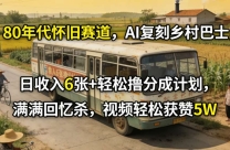80年代怀旧赛道,AI复刻乡村巴士,日收入6张+轻松撸分成计划,满满回忆杀,视频轻松获赞5W 项目介绍: 怀旧风格赛道又一匹黑马新人直接上手每天几分钟轻松 ...