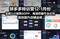 拼多多特训营12-1月份,全新3.01矩阵Sop,精准把握平台红利,高效提升店铺业绩 本套多多特训营12-1月课程,专为拼多多商家、运营操盘手打造,聚焦平台最新 ...