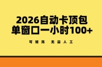 2026自动卡顶包玩法,单窗口一小时100+,可矩阵操作,无需人工【揭秘】 项目介绍: 广告流量主大家都不陌生了,维持好多年的老项目,有商家就有需求就需要 ...