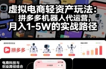 虚拟电商轻资产玩法:拼多多机器人代运营,月入1-5W的实战路径【揭秘】 对普通人来说,网络创业的关键思路绝非“全面撒网”,而是“精准聚焦、轻装上阵”— ...