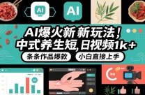AI爆火新玩法,中式养生短视频,日收益1k+条条作品爆款,小白直接上手,附详细教程 项目介绍: 养生赛道新玩法,结合古风风格元素,26年新的蓝海项目玩法 ...