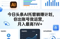 今日头条AI托管躺賺计划,你出账号我运营,月入最高1W+【揭秘】 项目介绍 咱们做的就是字节旗下的今日头条大平台,每天有好几亿人在用,流量特别大,现在就 ...