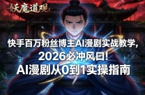 快手百万粉丝博主AI漫剧实战教学,2026必冲风口!AI漫剧从0到1实操指南 2026年,AI漫剧已成内容创业的黄金风口!数据显示,漫剧行业市场规模持续攀升,快手 ...