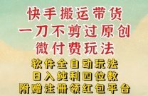 快手搬运带货,一刀不剪过原创,微付费玩法,软件全自动玩法,日入纯利四位数【揭秘】 项目介绍: Hello hello宝子们,前段时间的话我们出了一节快手半自动 ...