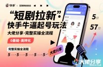 短剧拉新快手大佬分享快手牛逼起号玩法完整实操全流程 项目原理: 短剧推广现在最火的玩法叫CPA模式,说白了就是:你剪辑短剧片段发抖音快手等平台,引导别 ...