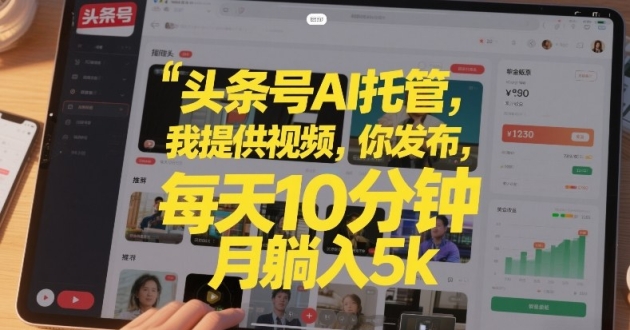 头条号AI托管,我提供视频,你发布,每天10分钟,月躺入5k+【揭秘】 项目介绍: 没有想搞副业賺钱的?没多少时间、没技术,还不想干打杂的辅助活,觉得纯属 ...