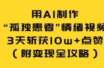 用AI制作“孤独患者”情绪视频,3天斩获10w+点赞(附变现全攻略) 项目简介: 今天给大家分享一个近期爆火的情感赛道新玩法——“孤独患者”情绪视频。 我 ...