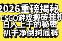 2026开年重磅解密,CSGO游戏搬砖挂G日入1k+的秘密,把倒狗的底裤扒干【揭秘】 项目揭秘,项目介绍: 此项目是基于CSGO这款游戏,此游戏是一款上市了十几年 ...