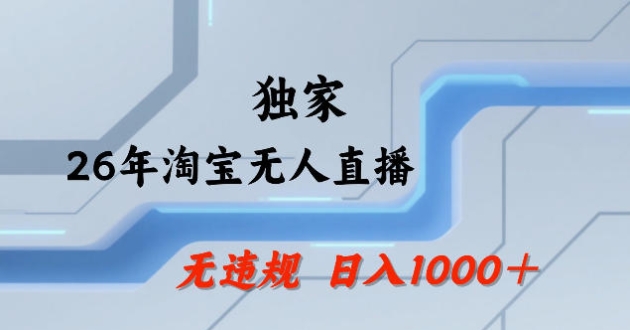 26年最新淘宝无人直播,24小时自动直播,不违规不封号,直播25小时卖17W,可批量矩阵【揭秘】 项目介绍: 无人直播这几年火得一塌糊涂,但是25年开始,只有 ...