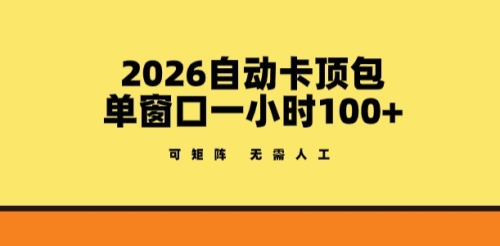- 12026自动卡顶包玩法,单窗口一小时100+,可矩阵操作,无需人工【