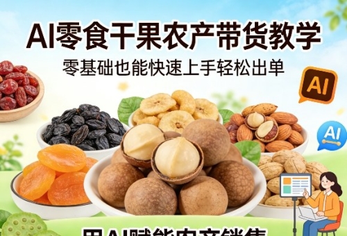 - 2AI零食干果农产带货教学,零基础也能快速上手轻松出单,用AI赋能