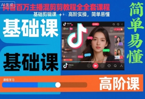 抖音百万主播混剪教程全套课程,基础剪辑课+高阶实操,简单易懂
