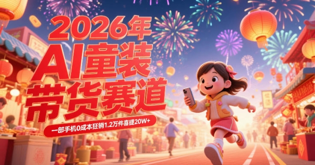 AI童装新春带货赛道,一部手机0成本狂销1.2万件喜提20W+,3步0基础也可以爆单 项目简介: 赛道:春节童装带货 课程主要内容就是教大家学会利用AI去抖音橱窗 ...