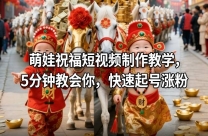 萌娃祝福短视频制作教学,5分钟教会你,快速起号涨粉 课程介绍 萌娃祝福短视频,爆款短视频教学涨粉快 发财祝福、节日祝福、新年祝福都可以做。 结合马上过 ...