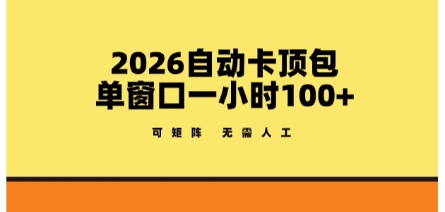 2026自动卡顶包玩法,单窗口一小时100+,可矩阵操作,无需人工【揭秘】 项目介绍: 广告流量主大家都不陌生了,维持好多年的老项目,有商家就有需求就需要 ...