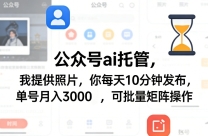 公众号ai托管,我提供照片,你每天10分钟发布,单号月入3000+,可批量矩阵操作【揭秘】 项目介绍: 简单通俗的讲,就是我们通过AI工具,生成文章,再发布 ...