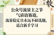 公众号流量主之节气谚语赛道,流量稳定且永远不缺选题,适合新手学习 项目介绍: 公众号节气谚语赛道,是零门槛、稳流量、长期可做的流量主变现项目。主打 ...