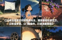 26年治愈系农村动画新玩法,播放量轻松破百万,日收益多张,0门槛操作,打造流量密码 项目介绍: 治愈风格视频新玩法,自带流量体质,怀旧+童年回忆杀,收 ...
