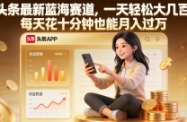 头条最新蓝海赛道,一天轻松大几张,每天花十分钟也能月入过1W【揭秘】 项目介绍: 适合新手小白,没有接触过互联网的,想在互联网賺钱的,初期都可以从这 ...