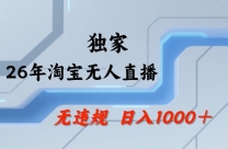 26年最新淘宝无人直播,24小时自动直播,不违规不封号,直播25小时卖17W,可批量矩阵【揭秘】 项目介绍: 无人直播这几年火得一塌糊涂,但是25年开始,只有 ...