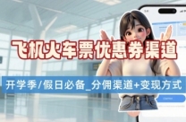 学生党必看!机票火车票优惠券申请渠道 + 项目打法,开学季节日速存 项目介绍: 每年都有很多节日,大到新年小到周末,买机票火车票是交通刚需,这条行业存 ...