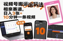视频号搬运玩法,相亲赛道,日入3张+,10分钟一条视频 项目介绍: 视频号分成计划新赛道,搬运相亲视频賺广告收益,日入3张+,目前做的人很少,抓紧入局。 ...