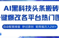 AI黑科技头条搬砖,一键爆改各平台热门图文 自动配图排版,秒过原创,矩阵搞月入2W+【揭秘】 项目介绍: 我们以往用AI工具做头条搬砖时虽然也可以过原创, ...