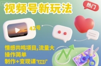 视频号新玩法,情感共鸣项目,流量大,操作简单,制作+变现课 项目介绍: 视频号情感共鸣玩法,流量大,操作简单,制作+变现课 项目本身适合所有人操作,就 ...