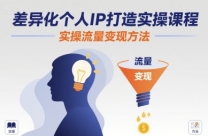 差异化个人IP打造实操课程,实操流量变现方法 课程内容: 第10节:6个纬度帮你打造让人印象深刻的账号 第11节:主题人设要如何打造 第12节主题人设的打造方 ...