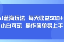 AI故事号蓝海玩法 每天收益5张+ 小白可玩 操作简单易上手 项目介绍: 这个项目适合新手操作,AI蓝海新玩法,每天收益5张+,每天15分钟就能搞定! 课程下载: ...