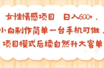 女性情感项目 小白制作简单一台手机可做 项目模式后续自然升大客单日入6张 项目介绍: 女性情感咨询,低客单门槛66块,高客单可达2980.今天全流程教你如何 ...